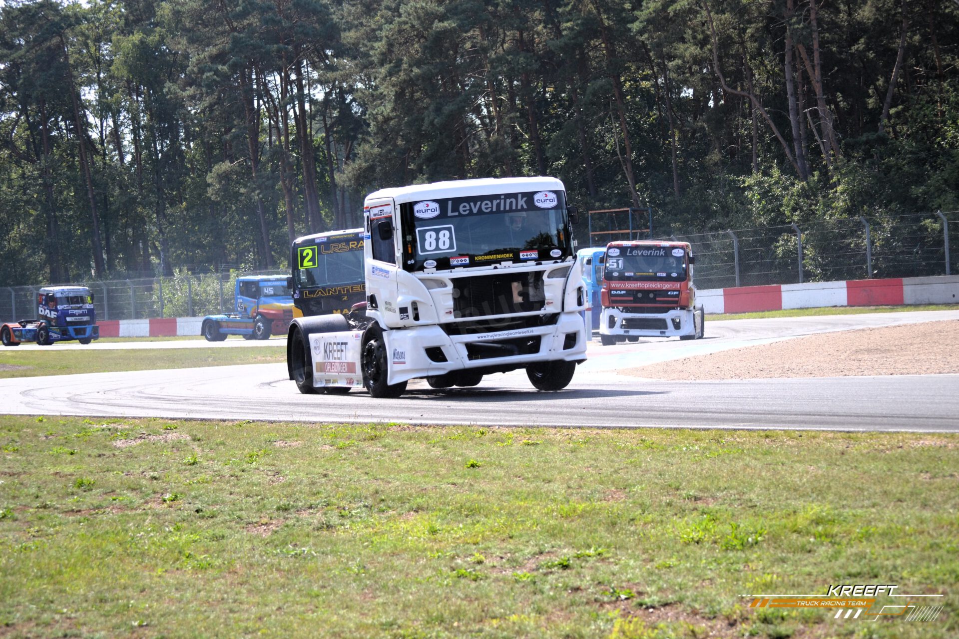 Vandaag hebben we de mogelijkheid een beetje slaap in te halen van de korte nachten die we hadden, 10:35 uur begint de kwalificatie race voor vandaag. Bjorn wist hierbij een mooie 3de plek te halen en Jos een nette 6de plek. Ook deze kwalificatie ziet er goed uit voor ons team, om 12:50 uur begint de eerste race van vandaag. Helaas wist Bjorn hierbij niet zijn positie te behouden en is die over de finish gekomen op een 6de plek. Jos wist deze race wel met een mooi resultaat te eindigen op de 3de plek en mocht ook deze race plaats nemen op het podium. De laatste race van het weekend was spannend voor ons als team. Bjorn begon hierbij op de 2de positie en Jos vanaf de 5de positie, door een mooie inhaalactie bij de start wist Jos gelijk een plek op 3 te pakken. Lang reden Bjorn en Jos op een mooie afstand van de nummer 4, en leek het erop dat ze de laatste race met ze 2en eindigde op het podium. Helaas mocht dat niet zo zijn, en viel Jos uit door een technisch probleem aan de truck en kon die niet meer verder racen. De laatste race stond wel Bjorn op het podium met een mooie 2de plaats.